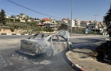 Meanwhile, in Jurish, colonizers infiltrated the northern part of the village at dawn, set fire to the parked vehicle of citizen Mohannad Salem Khaled, and scrawled racist slogans on the walls of his home.