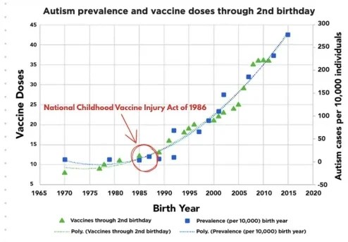 Current evidence indicates that the National Childhood Vaccine Injury Act of 1986 likely sparked the autism epidemic.