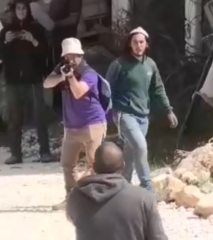Two of the settlers can be seen in the video pointing their rifles toward citizens and opening fire, presumably in an attempt to intimidate them.