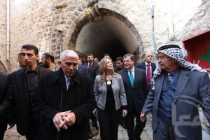 Spanish FM Trinidad Jimenez tours the Old City of Hebron, moments before she was verbally assaulted by settlers. [MaanImages]