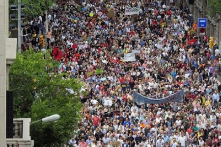 Anti-government protests in Barcelona, Spain on June 19, 2011