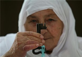 Palestinian refugee Mudalala Akel, 86, still holds the keys to her family’s home