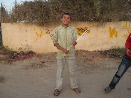 After a lovely day of drinking excessive amounts of tea with a few families in South Gaza (Faraheen and Khuza’a, to be exact), an Italian colleague, Silvia, who used to live in Khuza’a, suggested walking down the road towards the local school. It was late afternoon, about 4:30 p.m. and dozens of children played in the area. We walked past slices of a giant concrete wall placed in the middle of the road. The slivers reminded me of Israel’s Apartheid Wall in the West Bank — 25 feet of reinforced concrete. The local villagers had apparently retrieved these sections from a former settlement and placed them there so that children could play outside while being (somewhat) protected from Israeli army gunfire.