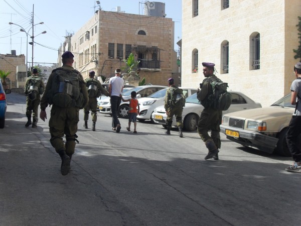Hebron, Occupied Palestine – On July 9th at around 4pm in occupied Hebron, Israeli soldiers arrested and held a seven-year-old boy in their military base along with his father. They kept the father handcuffed and blindfolded, and transferred them to the checkpoint separating the Israeli and Palestinian controlled areas of Hebron – Checkpoint 56 – and interrogated both of them while they waited for District Coordination Office (DCO) – the liasion for the Palestinian Authority.