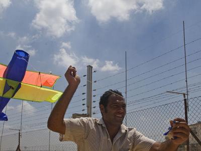 Bassem Abu Rahme flying a kite (image from palestinechronicle)