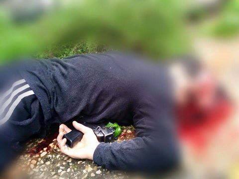 My take: nope, no firefight. Just an outright liquidation of terror vermin, as Israeli police and Shin Bet commanders see it. Though I object generally to terror porn, I’m displaying a picture of his corpse because I want to show the effrontery of the security forces who I am almost certain planted a weapon next to Milhem’s body. An image of the murder scene from a different angle shows a second pistol of some kind (or a separate part of the weapon lying by his side) in his hand. This is no different from the scores of cases in which they planted knives next to the bodies of Palestinians murdered by the same Israeli executioner-security forces.