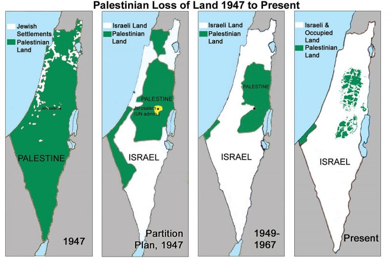 Hence, if we are to be accurate, whenever we discuss the Israeli occupation, this should refer to the West Bank, Gaza Strip and other land now accepted to be part of Israel which it has occupied since the 1949 Armistice. While paying lip-service to the UN Partition Plan for its own legitimacy, Israel continues to ignore the terms of the resolution in almost every respect. A glance at the “Disappearing Palestine” maps confirms this unpleasant fact on the ground.