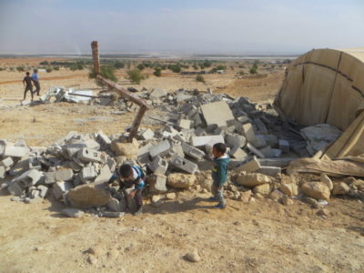 When the complete destruction of the village took place 8 years ago, 10 families immediately fled. This is a village that receives only 1,500 litres of water for each household per week; that can never get a permit to farm or build; that cannot dig a well deeper than 150 meters, enforced by Israeli occupation law.