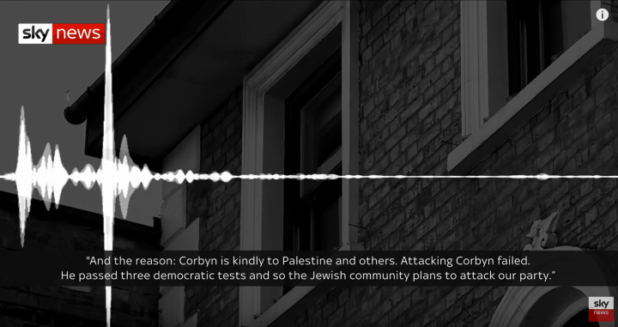 This recording was released as part of the Al Jazeera documentary The Lobby. In the same documentary is this clip where an Israeli embassy employee discusses a plan to “take down” Jeremy Corbyn.