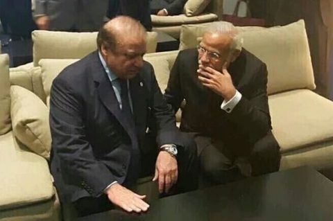 (Nawaz Sharif and Modi in “informal” conversation, Paris, Nov 30, 2015)