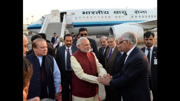 (Nawaz Sharif receiving Modi at the tarmac of Lahore airport, Dec 25, 2015)