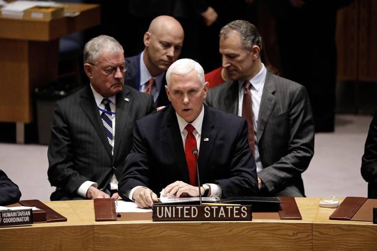 US VP Mike Pence called on the UN to recognize Guaido as Venezuela’s president. (EFE)