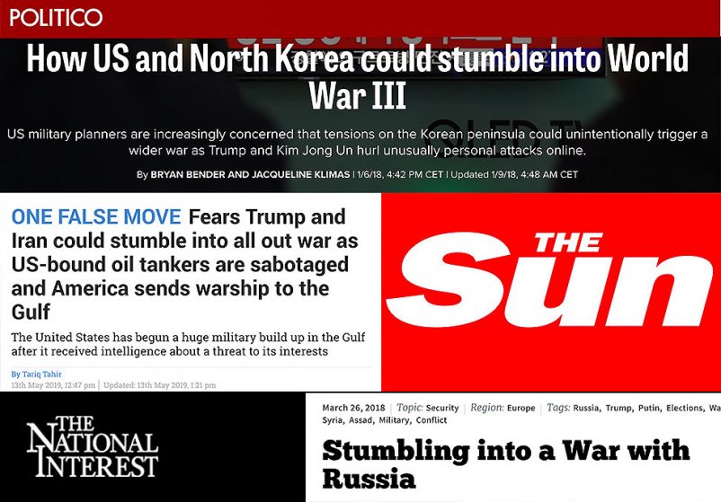 Next time you read the news, notice how the US is always “stumbling into” war, or “drifting into” war or “sliding into” war — or even “sleepwalking into” war. To “stumble into” war seems to be a firm favorite among headline writers. The US has “stumbled” into war in Iraq and Syria and has been, at one time or another, at risk of “stumbling” into war with Russia, North Korea and most recently Iran.