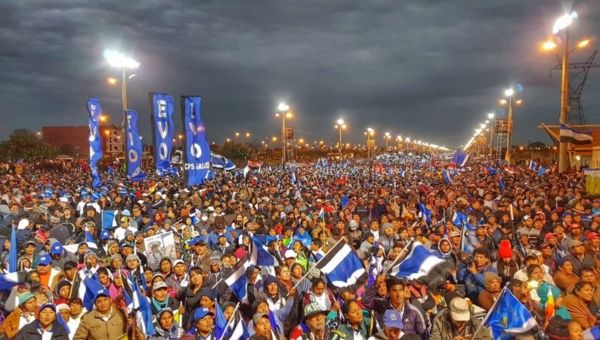 President Morales addressed the crowd on Friday, saying, “We are rallied here so that Bolivia is never again in a state of dependency. So that the Bolivian people will never have to beg again. We are here sisters and brothers, so that neoliberalism nor U.S. military bases ever return.”
