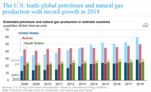 But that trend might turn out to be just a blip. The U.S. is still expected to account of the bulk of new drilling and the vast majority of new production, with much of that coming from shale. Already, the U.S. is the world’s largest producer of both oil and natural gas. And the pace has accelerated in recent years. In 2018, U.S. oil and gas production increased by 16 and 12 percent, respectively. According to the EIA, the U.S. surpassed Russia in terms of gas production in 2011, claiming the top spot, and it surpassed Saudi Arabia in oil production last year.