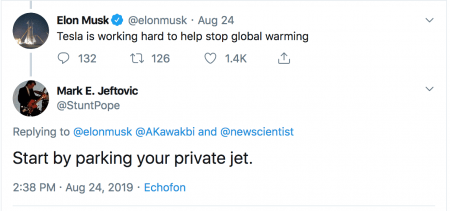 Of course, that estimate of 4 legs per week could be low. Elon Musk has a private jet that logged 150,000 miles in 2018. Enough to circle the globe 6 times.
