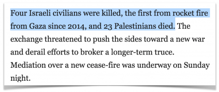 From the Washington Post (of which Amazon founder Jeff Bezos is the sole owner) on May 6, 2019. Israelis are killed, but Palestinians just “die”