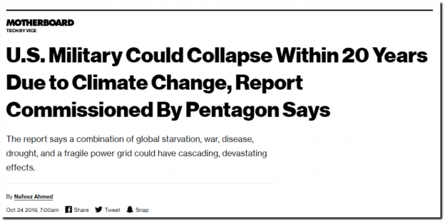 The Pentagon says the world could end in 20 years because of global warming.
