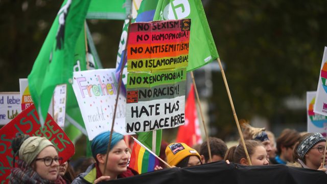 The survey did some digging into what people believe constitutes the kind of hate speech that the government should regulate, and the results were illuminating. “Racists” were the least popular group, with 52 percent calling for a government crackdown on their utterances, followed closely by neo-Nazis, who were loathed by half the respondents. Radical Islamists were not a priority for anyone but the middle class and those with just a high school education. Holocaust deniers rankled just 35 percent, while anti-vaccine advocates and climate-change deniers were an issue for a fifth or less of the population. Some 37 percent of respondents didn’t think any of those groups should be banned from speaking – a figure that climbed to 42 percent among college graduates.