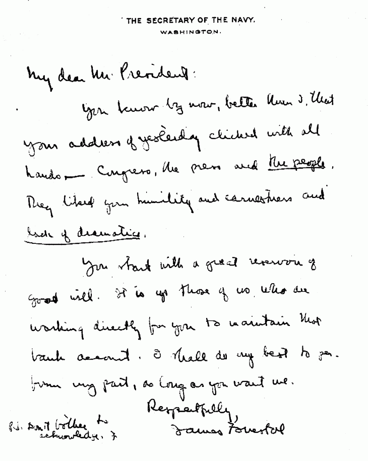 The White House later claimed that Forrestal had sent word that he wanted President Truman to take custody of these diaries, but that is very unlikely.
