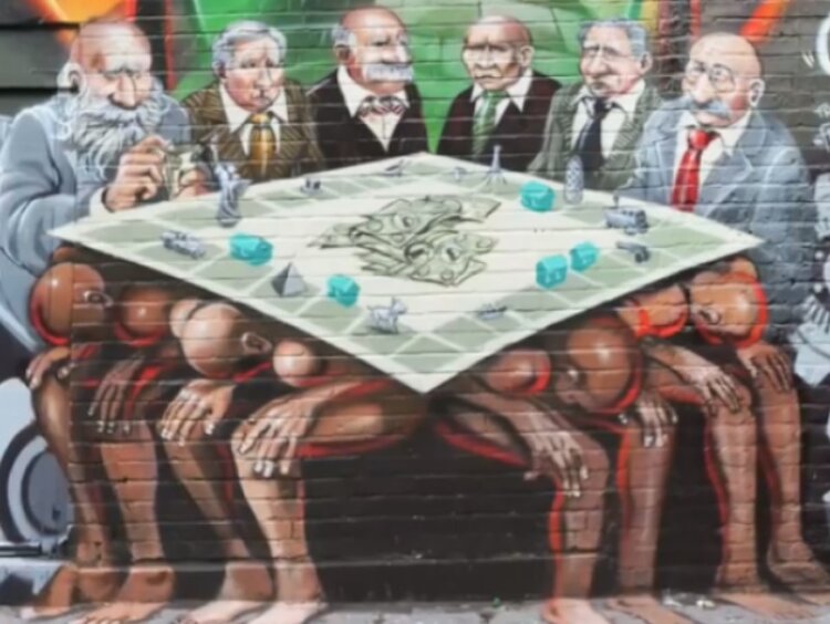 Finally, are the youngsters who adhere to left and progressive values and insist upon a better, more diverse and anti racist future willing to admit that there are a few Black slaves under the monopoly board? I ask because to date, not one Left or Progressive voice has come forward to state that this Mural is all about Black slavery and capitalists.