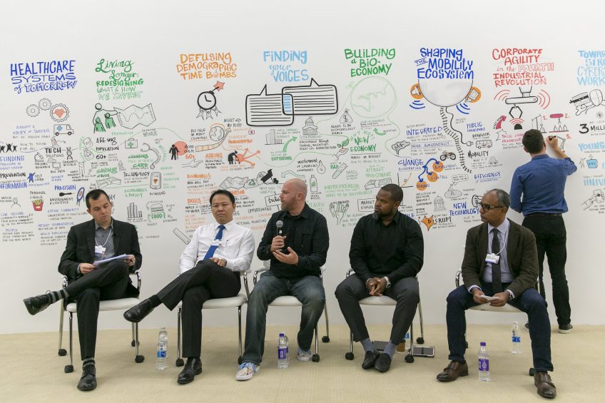 Viewing the virtual-reality film “Collisions” at a session of the World Economic Forum in Davos, Switzerland, January 2016. (World Economic Forum, Flickr, CC BY-NC-SA 2.0)