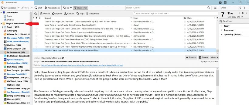 As Editor of Health Impact News, my entire news feed these days is in my RSS Feed Reader. I use the desktop version of Mozilla’s Thunderbird (free), which is mainly known as an email client, but has powerful features for listing RSS feeds that can be quickly used to look at new articles from as many sources as you want to add.