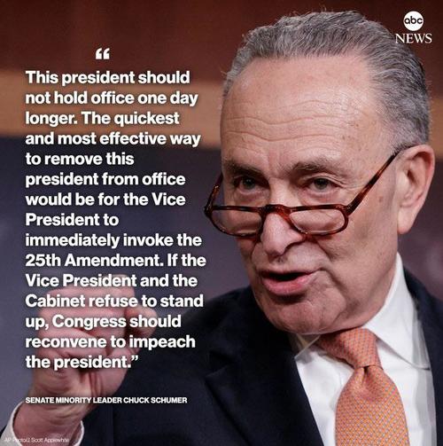 “What happened at the US Capitol yesterday was an insurrection against the United States, incited by the president,” said Schumer. “This president should not hold office one day longer.”