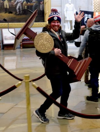 Afterwards, a tiny sliver of this vast assembly of angry individuals—perhaps less than one in a thousand—barged their way into the strangely-undefended Capitol building of Congress, taking souvenir selfies, livesteaming their antics, and generally played the role of tourist-protesters while the lawmakers they so despised as corrupt mostly fled or hid. These Trumpists and some of their colorful costumes brought to mind the radical Yippies of the late 1960s.