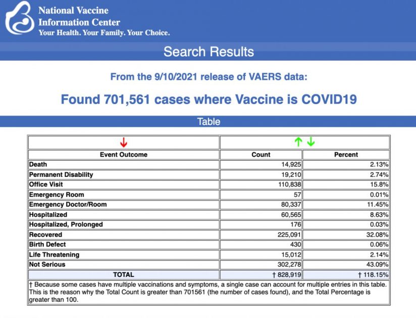 Data released Sept. 17 by the Centers for Disease Control and Prevention (CDC) showed that between Dec. 14, 2020 and Sept. 10, 2021, a total of 701,561 adverse events following COVID vaccines were reported to the Vaccine Adverse Event Reporting System (VAERS). The data included a total of 14,925 reports of deaths — an increase of 419 over the previous week.
