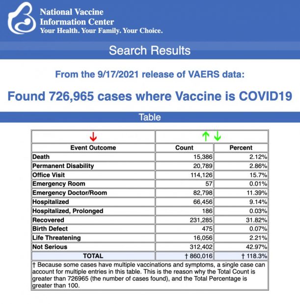 Data released Sept. 17 by the Centers for Disease Control and Prevention (CDC) showed that between Dec. 14, 2020 and Sept. 17, 2021, a total of 726,965 adverse events following COVID vaccines were reported to the Vaccine Adverse Event Reporting System (VAERS). The data included a total of 15,386 reports of deaths — an increase of 461 over the previous week.