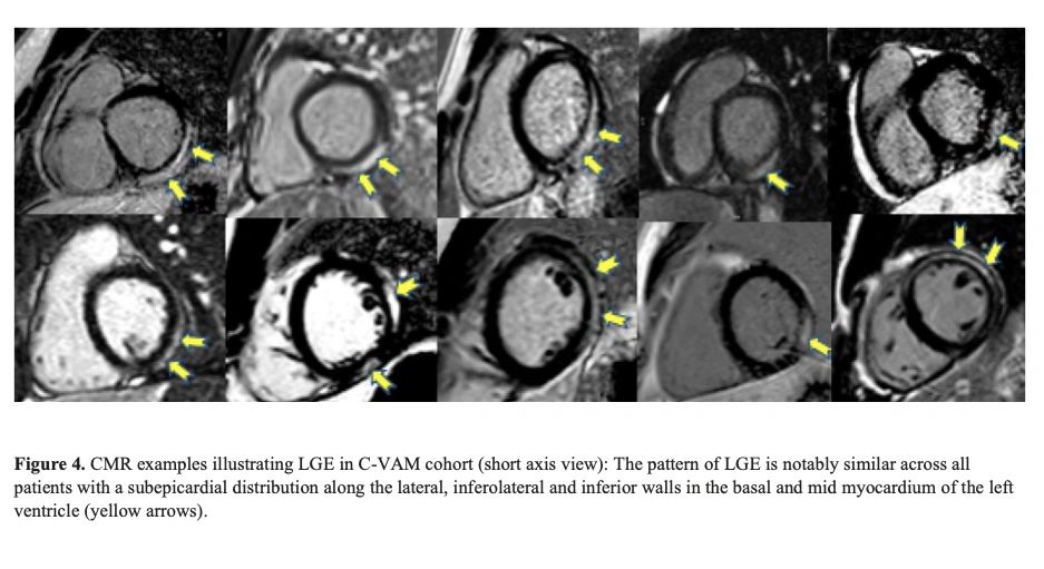 Notably, a retrospective multi-centre study across 16 US hospitals including patients <21 years of age with a diagnosis of myocarditis following COVID-19 vaccination, found concerning abnormalities in heart tissue (the left ventricle) (See image with yellow arrows).