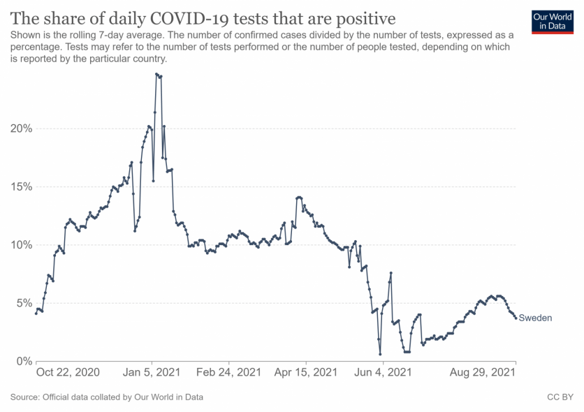 Another country worth looking at is Sweden. Its Delta surge duly appeared, but then, unlike in Israel, quickly seems to be fizzling out. Is this a result of having more robust herd immunity from allowing the virus to spread more freely?