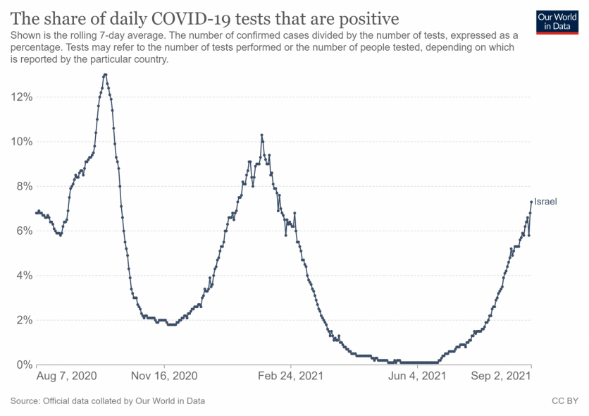 How are they faring? Israel is currently experiencing a big surge in Delta infections, at a time when over 62% of the population is double vaccinated.