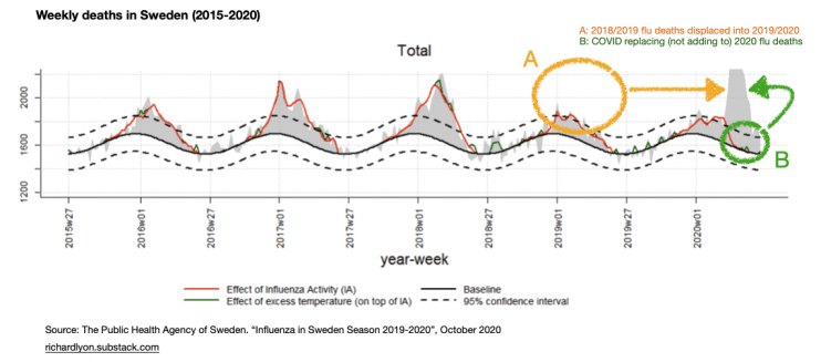 I say “after making some adjustment for good and bad flu years”, because it’s by obscuring this that COVID catastrophists have weaponised Sweden and, ironically, coerced it into being an element of their narrative.