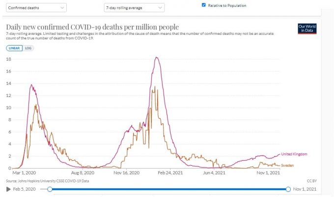 Sweden and Britain had outbreaks at exact same time albeit British death peaks were higher