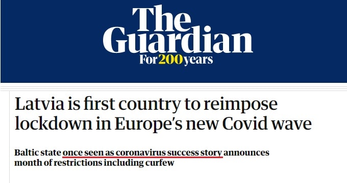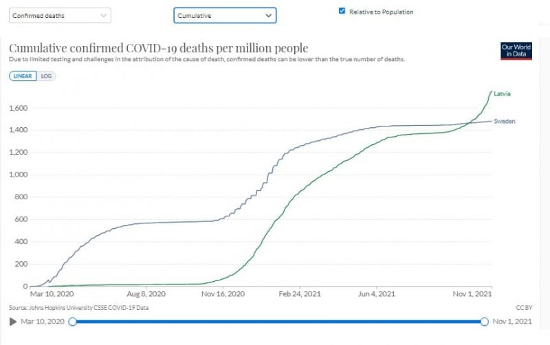 So if we are allowed to compare Covid outcomes in Sweden and in its former overseas territory of Finland,may we also be so bold as to compare it to the outcome inits (previously German-ruled) former territory of Latvia?