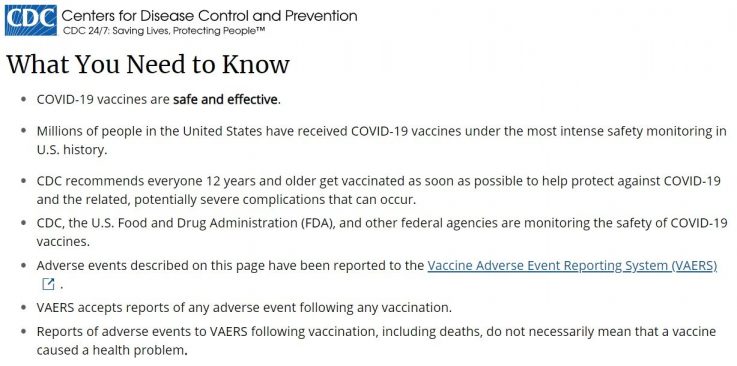 The CDC admits this in this statement on their website. And they go on to explain that this safety monitoring system is called VAERS, the Vaccine Adverse Event Reporting System.