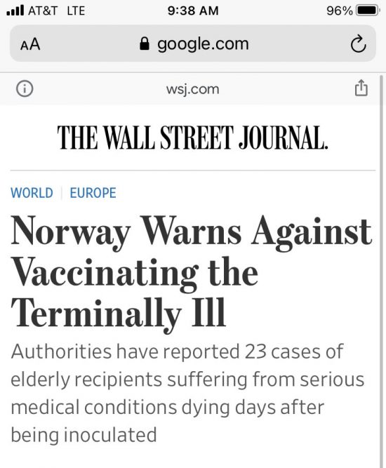 How do they differ? I can’t find any hard data, but we know that at least a fraction of the elderly unvaccinated are too ill to be vaccinated. Some are in hospice care. Norway recommended against giving people in hospice the Covid vaccine in January following deaths in terminally ill patients.