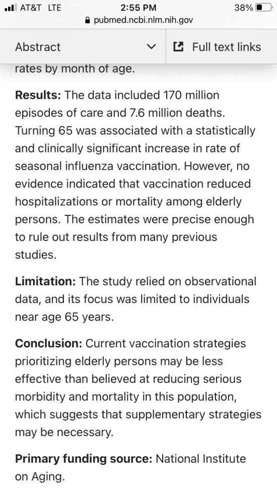 In other words, influenza vaccines only seem to work. Any observational estimate that compares death rates in people who have gotten shots to those who have not will be inherently untrustworthy, no matter how hard researchers try to correct for the healthy recipient bias.