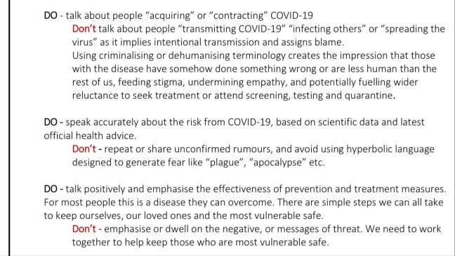 and the WHO was putting out guidelines to avoid stigmatizing people who got covid…
