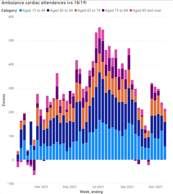 Answer – And all I’m saying is that if the vaccine is a lab-generated pathogen – and I think it is – then it certainly was not designed to kill people on the spot. It was engineered to produce a delayed reaction that gradually but relentlessly erodes the health of the vaccinee. In other words, the full impact of the blood clots, bleeding, autoimmune issues and other vaccine-generated injuries will only be fully felt at a later date via increasing incidents of heart attacks, strokes, vascular illness and even cancer. (Check out the “latest trend of cardiac attendances by Scottish Ambulance Service – this is *excess* above the 2018/19 norm. Huge spike in summer, 500 ambulance calls per week above normal, mainly age 15-64. Was settling, then spike up again since late October.” Scottish Unity – Edinburgh Group)