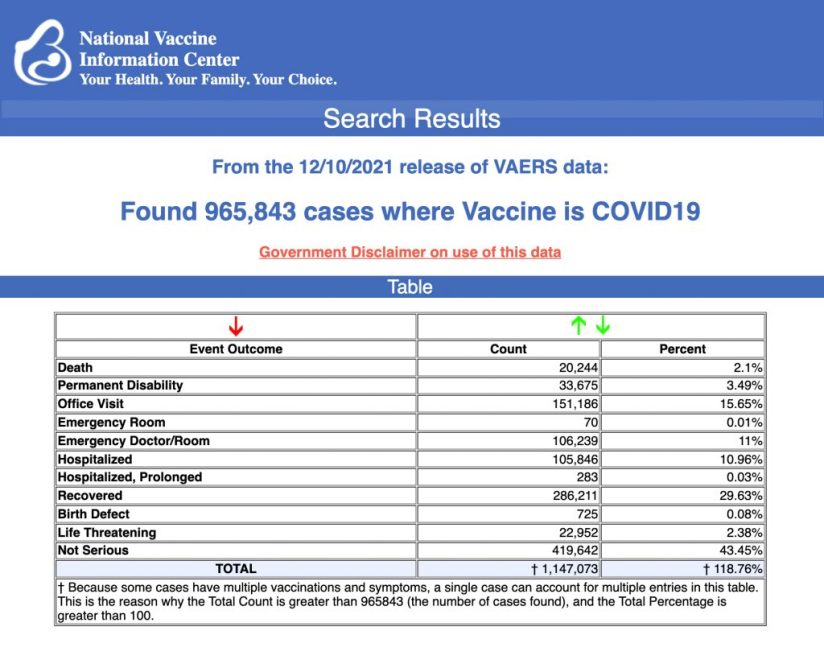 The Centers for Disease Control and Prevention today released new data showing a total of 965,843 reports of adverse events following COVID vaccines were submitted between Dec. 14, 2020, and Dec. 10, 2021, to the Vaccine Adverse Event Reporting System (VAERS). VAERS is the primary government-funded system for reporting adverse vaccine reactions in the U.S.