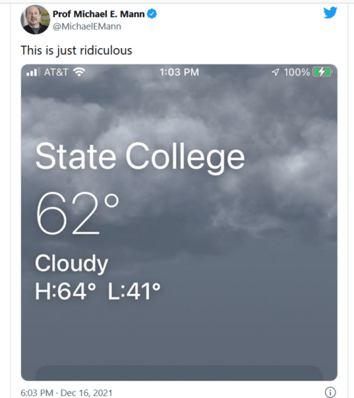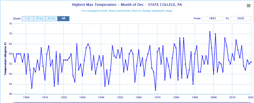 In fact December temperatures of 64F are perfectly normal at Penn State.