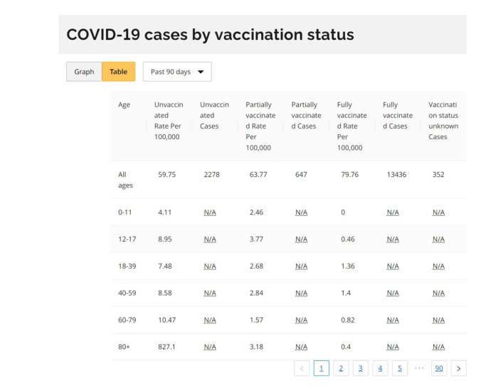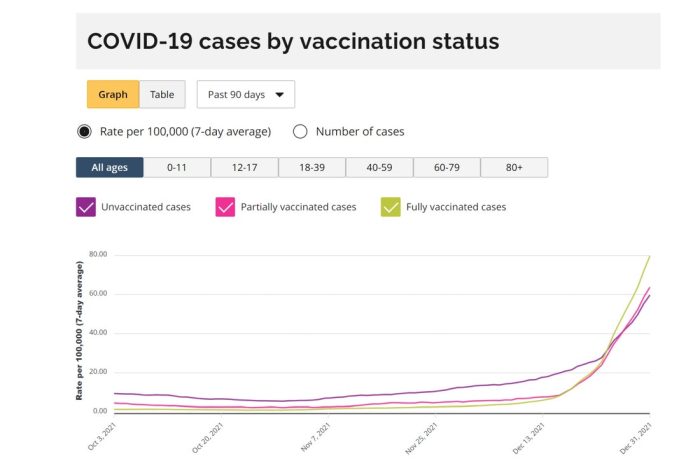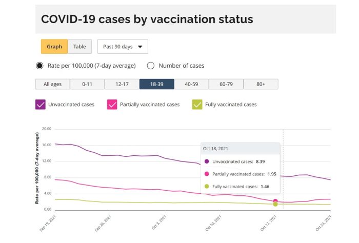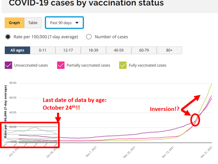 “The https://covid-19.ontario.ca/data says: “Due to technical difficulties, the case rate by vaccination status by age group is not available”.
