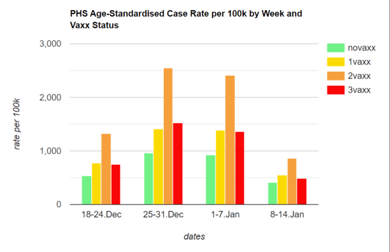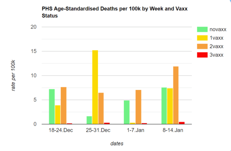 Meanwhile Johnson did his best with something that’s come to be understood with the phrase, ‘lies,damn lies and statistics’, telling us that from ‘our NHS data, we know that around 90 per cent of people in intensive care are not boosted’. Never mind that the totally unvaccinated are the minority in intensive care.