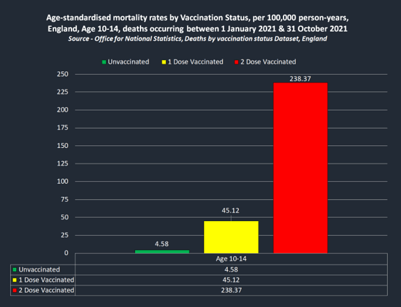 Strangely enough, the subsequent data set from the ONS, which includes data through the end of December 2021, conspicuously excludes children in these age groups.