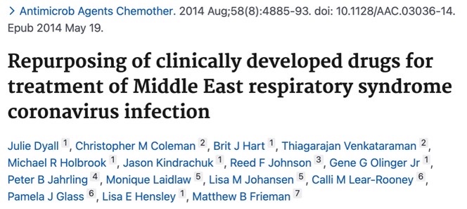 Nine years later, In 2014, scientists in Tony Fauci’s NIAID showed the same thing. Not only did chloroquine work in vitro against the MERS coronavirus, but dozens of existing drugs, which could have been tested in patients as soon as the pandemic started, were also effective against SARS and MERS coronaviruses.