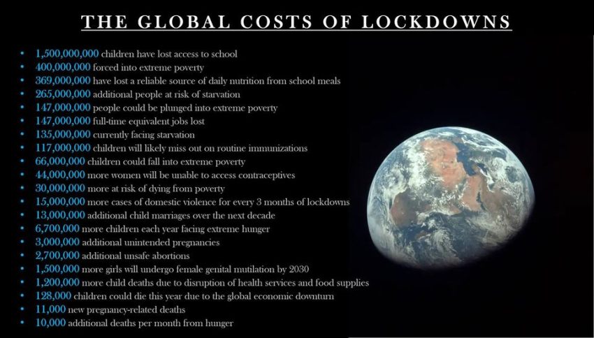 Rational Ground has a partial list of lockdown harms (with supporting documentation) that is simply way too long to reproduce here, but it conveys a sense of the scope and destruction inflicted by public health officials worldwide.