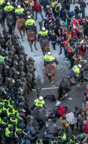 “…. Canada, once a symbol of the modern world, has become a symbol of civil rights violations under your quasi-liberal boot in recent months. We watched how you trample women with horses, how you block the bank accounts of single parents so that they can’t even pay their children’s education and medicine, that they can’t pay utilities, mortgages for their homes.”